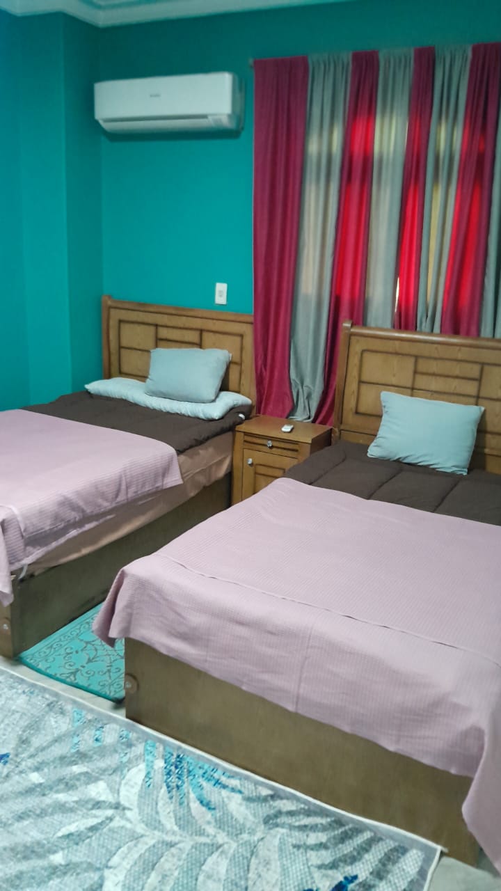 فيلا ٣ أدوار(٣شقق). مفروشة بالكامل + روف 50م٢ بحمام+ جراج ٢٠٠م٢به غرفة وحمام. *الشقة ٢٠٠م٢. ٣ غرف نوم منهم واحدة ماستر+ ٢حمام + مطبخ كامل بجميع أجهزته وأدواته+ رسبشن٤قطع + ٢بلكون.